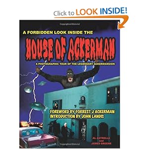 "I am Dr. Acula. I bid you...welcome." Take your own private tour of the Ackermansion! Over 200 never before seen color fotos! What fang-tastic thrills await you in the House of Ackerman? Lon Chaney Sr.'s Makeup kits Original dinosaur models from 1933's King Kong The alien arm from 1953's War of The Worlds The Capitol dome and saucer from Earth vs. the Flying Saucers Rare imagi-movie posters, stills, props, and paintings ghoulore Since the 1930's Forrest J Ackerman had been the leading light of the world of science fiction, as well as editor, agent, author, actor, and peerless collector of books, artwork, and familiar props from fantastic films of yesteryear. He gained lasting fame among the boomer generation as the editor of Warren Publishing magazines Famous Monsters of Filmland and Spacemen. The photographs in this book span a 40-year period, from the first Ackermuseum on Sherbourne Drive to Son of Ackermansion on Glendower Avenue and finally a look at Forry's final home, known by his fans as the Acker-mini-mansion. "Al and Jim have obviously borrowed an H.G. Wells Time Machine and turned back the clock to the golden age of my inhabiting the 18-room Ackermansion...so if you will, like Peter Lorre, risk your eyeballs popping out in wonder, then come, enjoy the treat of your lifetime!" -Forrest J Ackerman